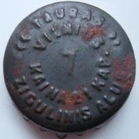Надпись на пробке: по внешней окружности: "Tauras" Žigulinis alus, по внутренней окружности: Vilnius Kaina 21 kap.